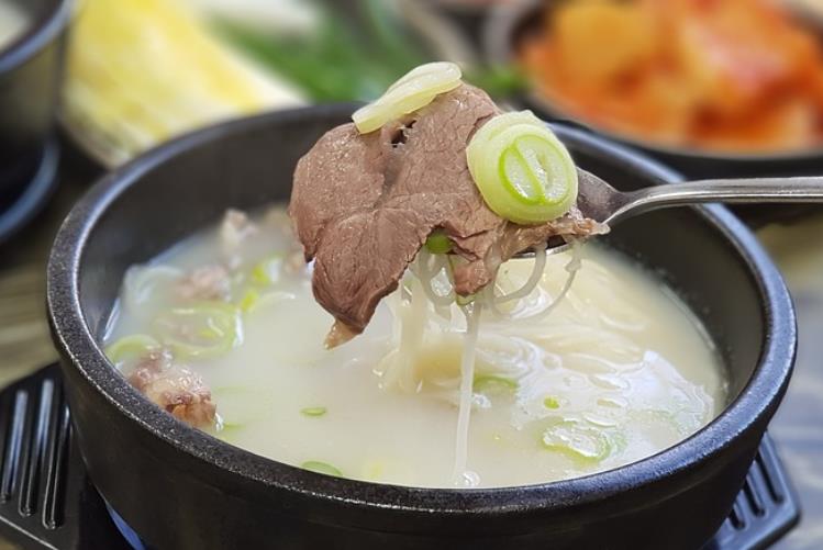 뼈에서 우러낸 사골에는 단백질, 칼슘이 풍부하게 들어가 있습니다. 또 고기도 함께 들어가 있기 때문에 단백질을 충분히 공급해줄 수 있고, 소면과 함께 밥을 먹으니 탄수화물도 부족하지 않게 채워줄 수 있습니다.