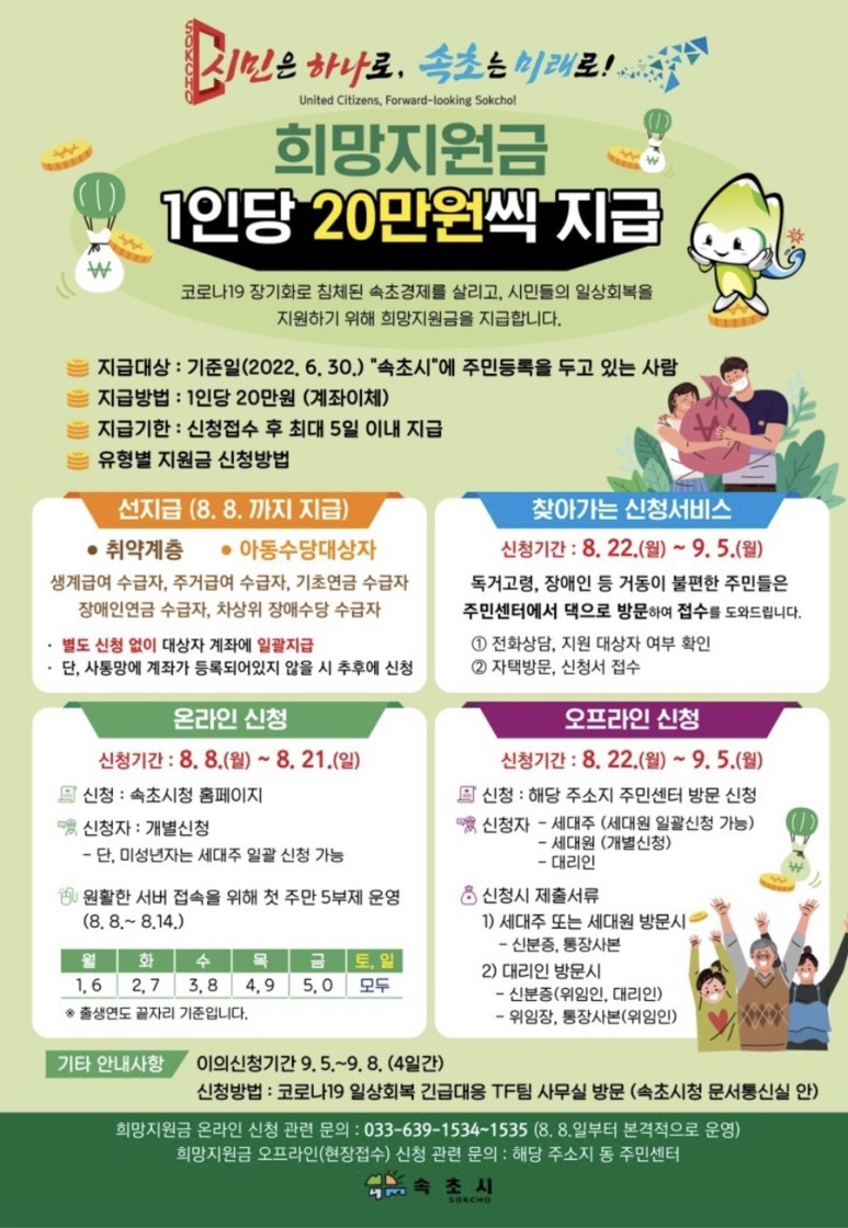 - 지급대상 : 2022년 6월 30일 기준으로 속초시에 주민등록을 두고 있는 사람